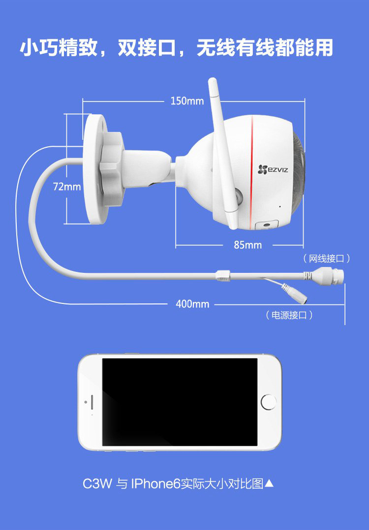 海康螢石無線wifi高清1080P壁掛式夜視智能安防家用報警監(jiān)控攝像機