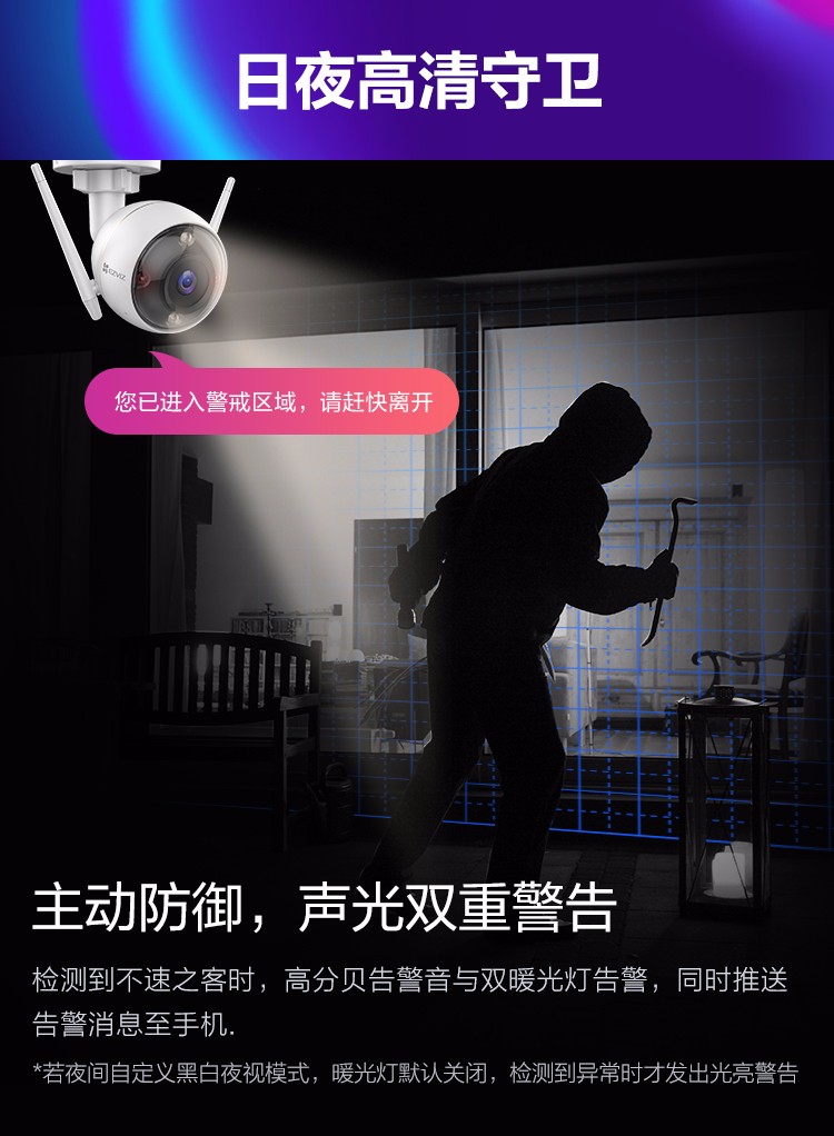 海康螢石C6TC家用云臺監控攝像頭帶移動偵測電話提醒